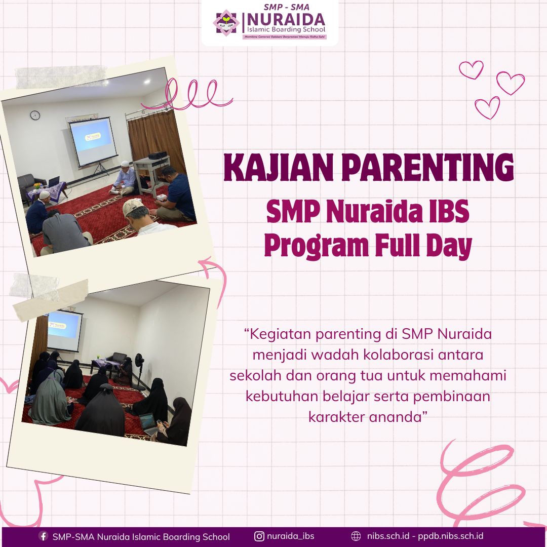 Kegiatan parenting di SMP Nuraida diselenggarakan sebagai sarana untuk menguatkan kolaborasi antara sekolah dan orang tua dalam mendampingi tumbuh kembang ananda. Melalui sesi berbagi ilmu, diskusi, dan pembekalan seputar pengasuhan, diharapkan orang tua dapat memahami kebutuhan belajar dan karakter anak secara lebih mendalam. Parenting ini menjadi momen penting untuk menyatukan visi antara rumah dan sekolah, sehingga pendidikan ananda berjalan lebih harmonis dan terarah