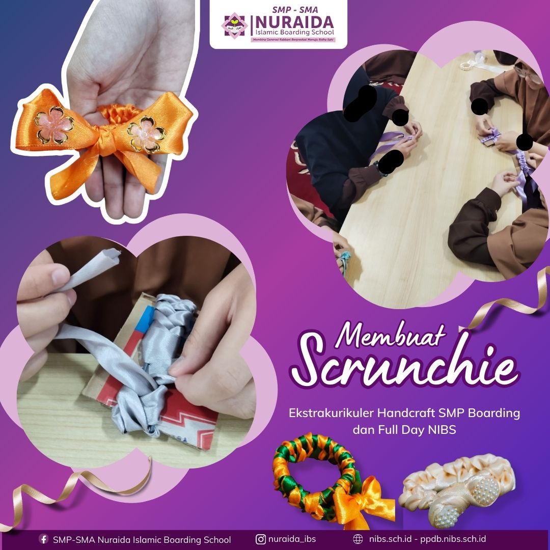 Keseruan membuat scrunchies (ikatan rambut kain) bisa jadi pengalaman kreatif sekaligus menyenangkan bagi thalibah SMP Nuraida yang mengikuti ekstra kurikuler Handscraft.