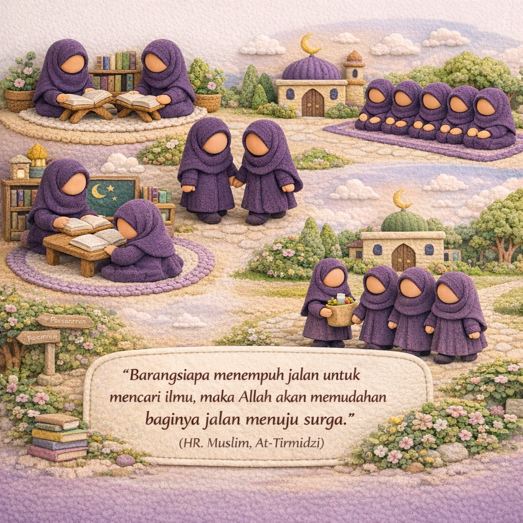 “Siapa yang menempuh jalan untuk mencari ilmu, maka Allah akan mudahkan baginya jalan menuju surga.” (HR. Muslim, no. 2699)