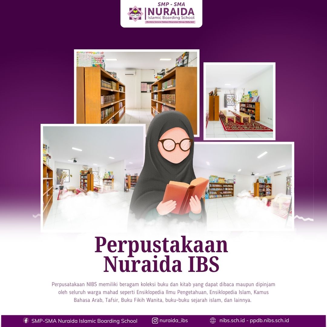 Perpustakaan Nuraida Islamic Boarding School memiliki ratusan koleksi buku dan kitab sepeti Ensiklopedia Islam, Ensiklopedia Ilmu Pengetahuan, Kamus bahasa Arab, Inggris dan Bahasa Indonesia, Tafsir, Buku Fikih Wanita dan Umum, buku-buku Sejarah Islam, buku pelajaran tingkat SMP-SMA dan buku cerita bergambar tentang pengetahuan Islam atau pengetahuan umum.