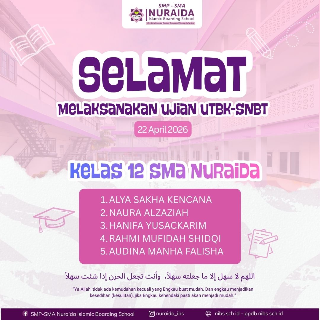 Doa dan dukungan terbaik untuk thalibah Kelas 12 SMA Nuraida Islamic Boarding School :