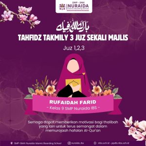 Alhamdulillah ananda Rufaidah Farid – Thalibah SMP kelas 9 telah menyelesaikan tasmi’ 3 Juz dalam sekali majlis.